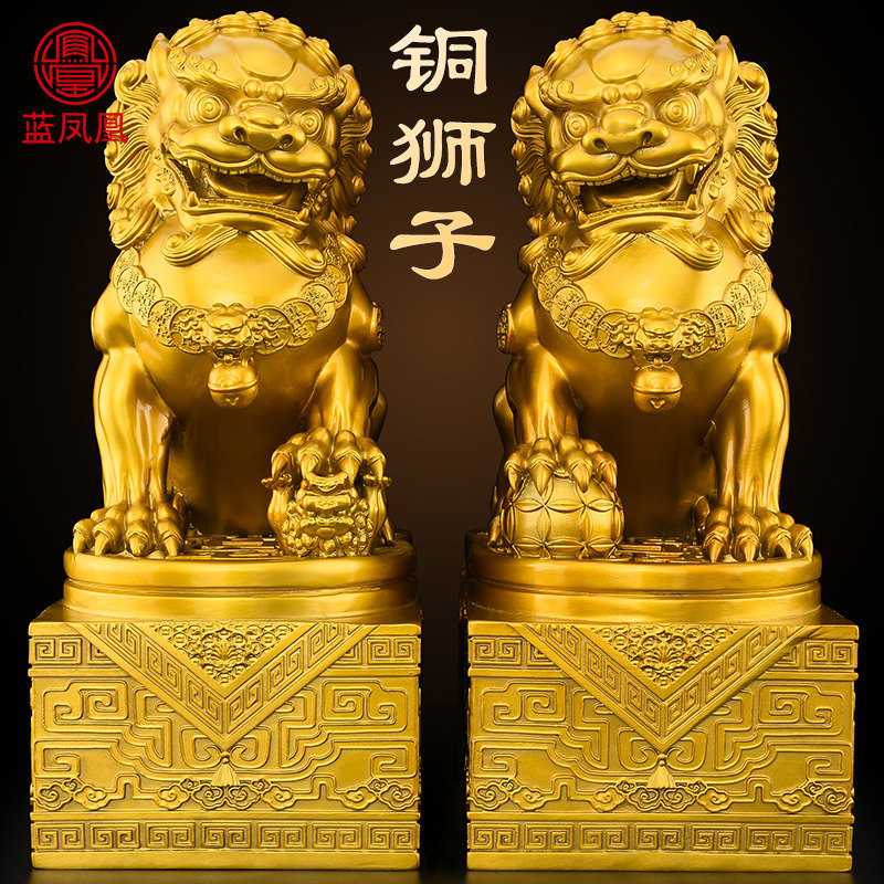纯黄铜狮子摆件一对大型狮子大门口大小号北京狮客厅卧室乔迁礼品