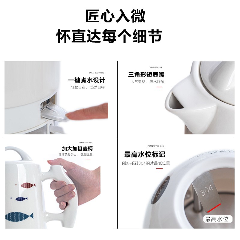 简约316不锈钢陶瓷电热水壶 家用自动断电防干烧瓷器烧水壶大容量