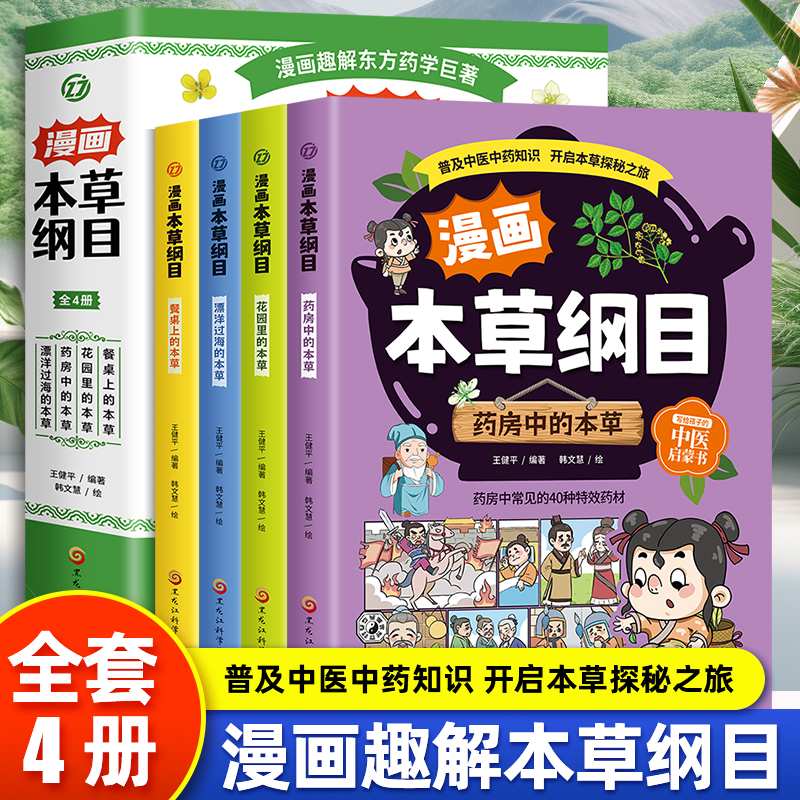 漫画本草纲目正版全4册 漫画趣解东方药学巨著 花园里的本草+餐桌上的本草+药房中的本草+漂洋过海的本草 儿童中医药科普启蒙书籍