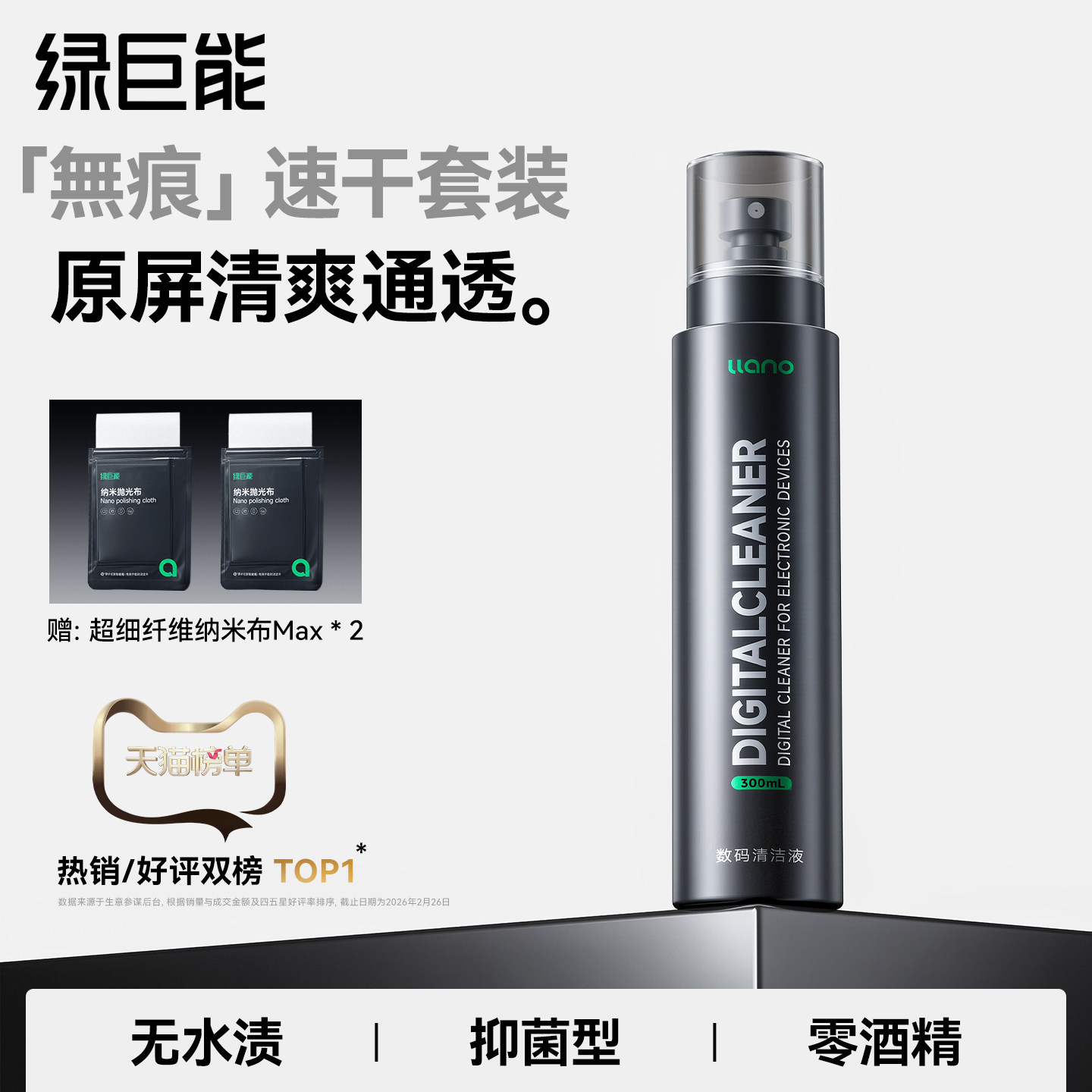 绿巨能J30速干屏幕清洁剂OLED屏幕电脑清洁套装键盘清洁清洗笔记本液晶电视专用超纤纳米布适用于苹果macbook