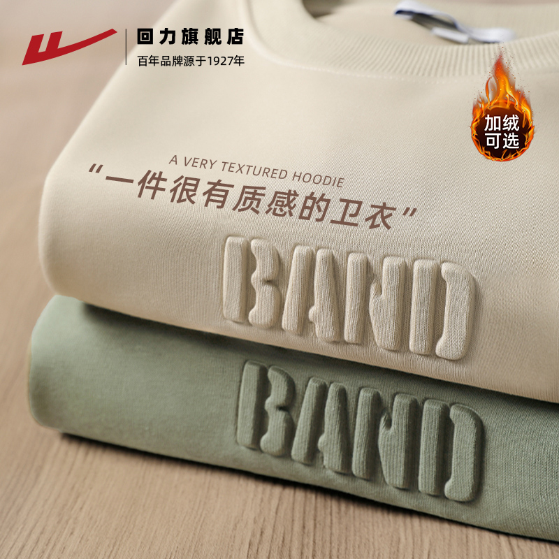 回力卫衣男春秋新款重磅圆领长袖T恤情侣加绒打底衫男士上衣外套