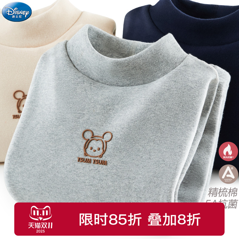 尼多熊秋冬儿童打底衫半高领T恤男女宝加绒长袖磨毛高领婴儿上衣