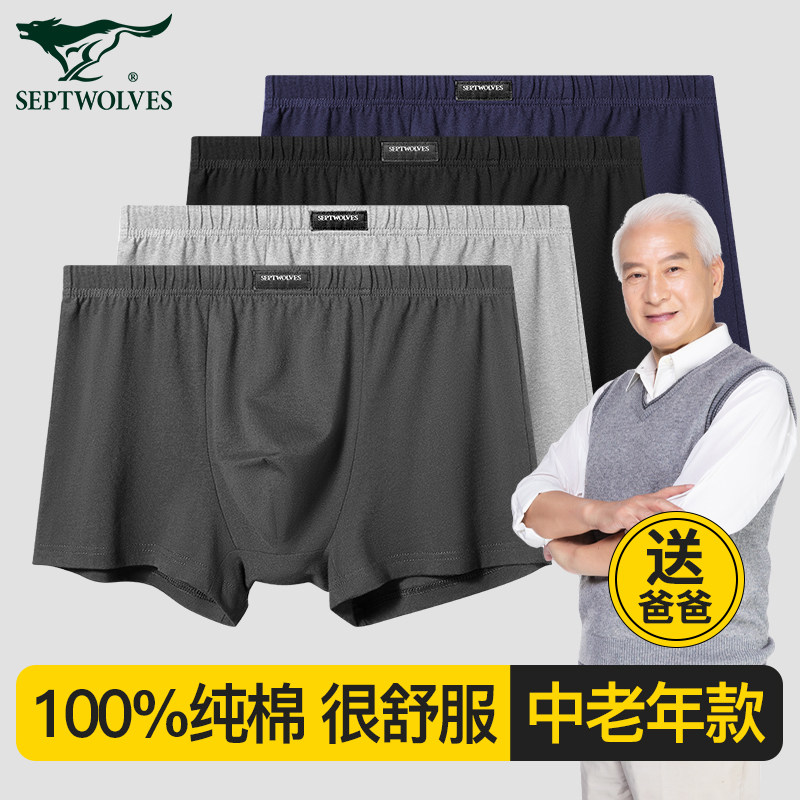 七匹狼男士内裤中老年爸爸短裤头纯棉宽松四角底裤100%全棉加大码