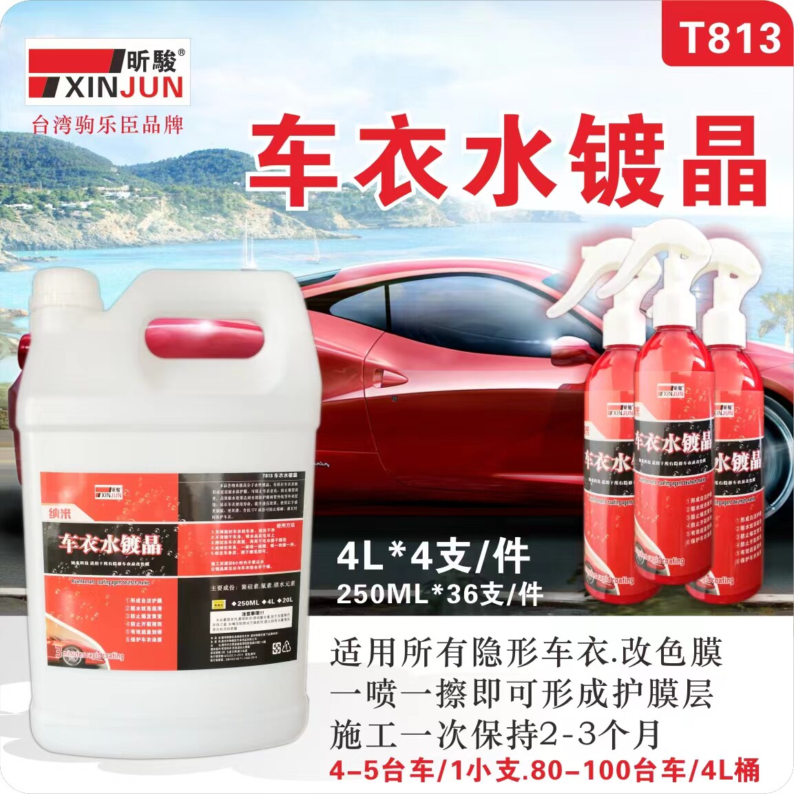 昕骏汽车车衣水镀晶 隐形车衣车改色膜保护膜水性镀晶 汽车镀膜剂