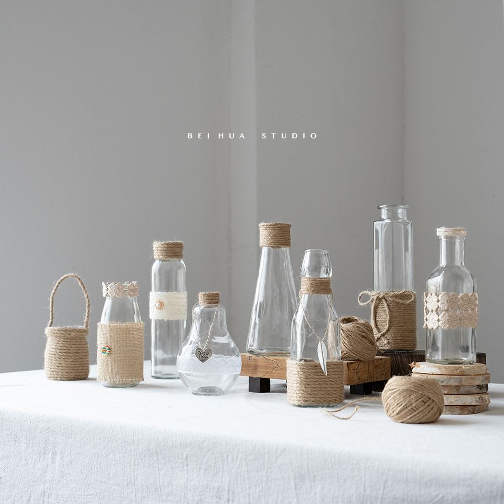 桌面玻璃小花瓶摆件手工麻绳成品干花鲜花假花插花花瓶办公室家居