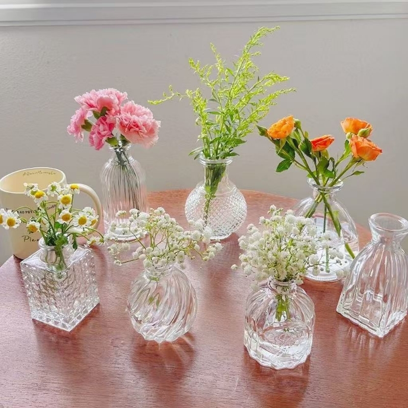 法式复古浮雕ins风迷你玻璃小花瓶透明水培插花器皿桌面装饰摆件