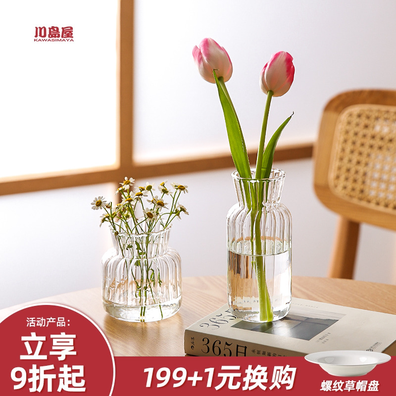 川岛屋玻璃小花瓶透明摆件客厅插花水养迷你桌面矮花器网红ins风