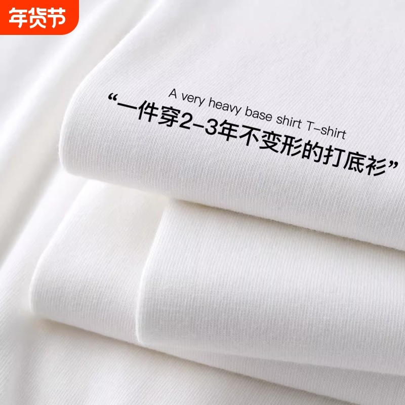500G重磅新疆棉长袖T恤男女纯棉美式小领口胖子大码加肥加大卫衣