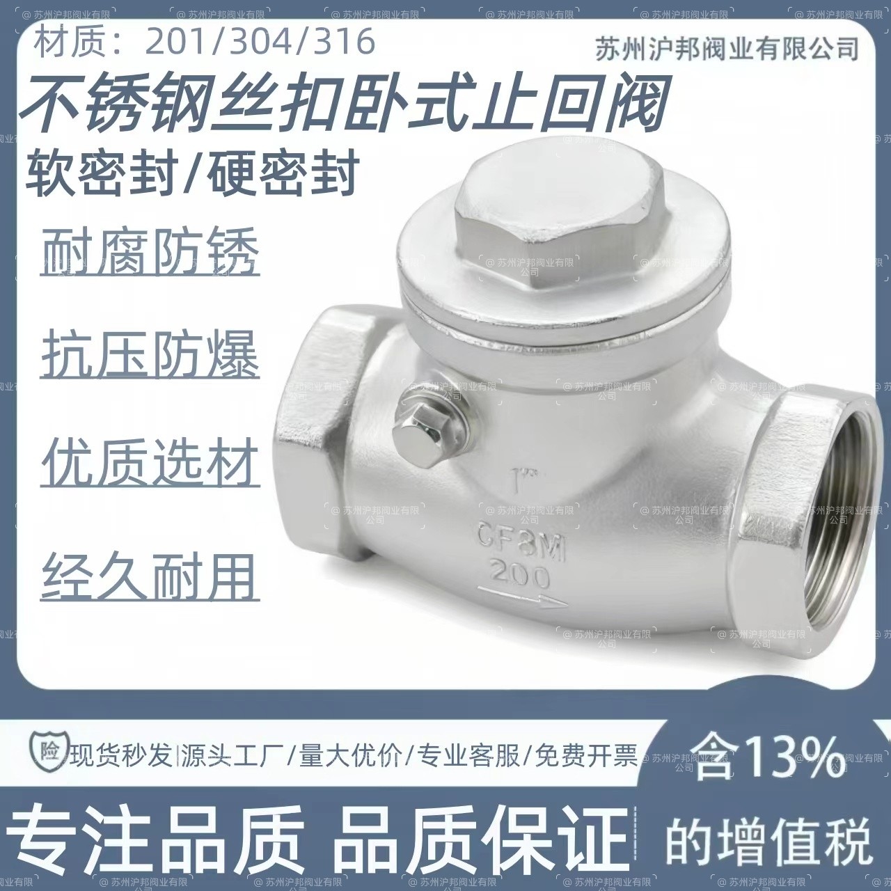 304不锈钢丝扣止回阀H14W内螺纹卧式摇摆式软密封单向阀dn15 20