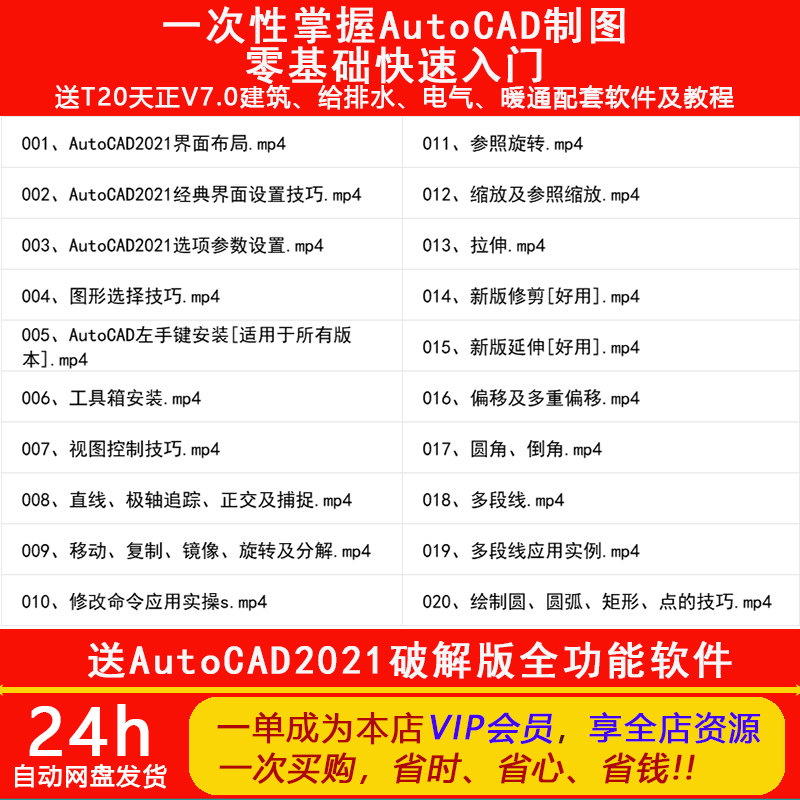 AutoCAD入门视频教程+天正建筑电气给排水暖通制图送CAD绘图软件