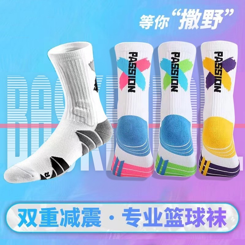 球员通道Bassport运动袜子男款美式精英长筒毛巾跑步篮球袜大远征