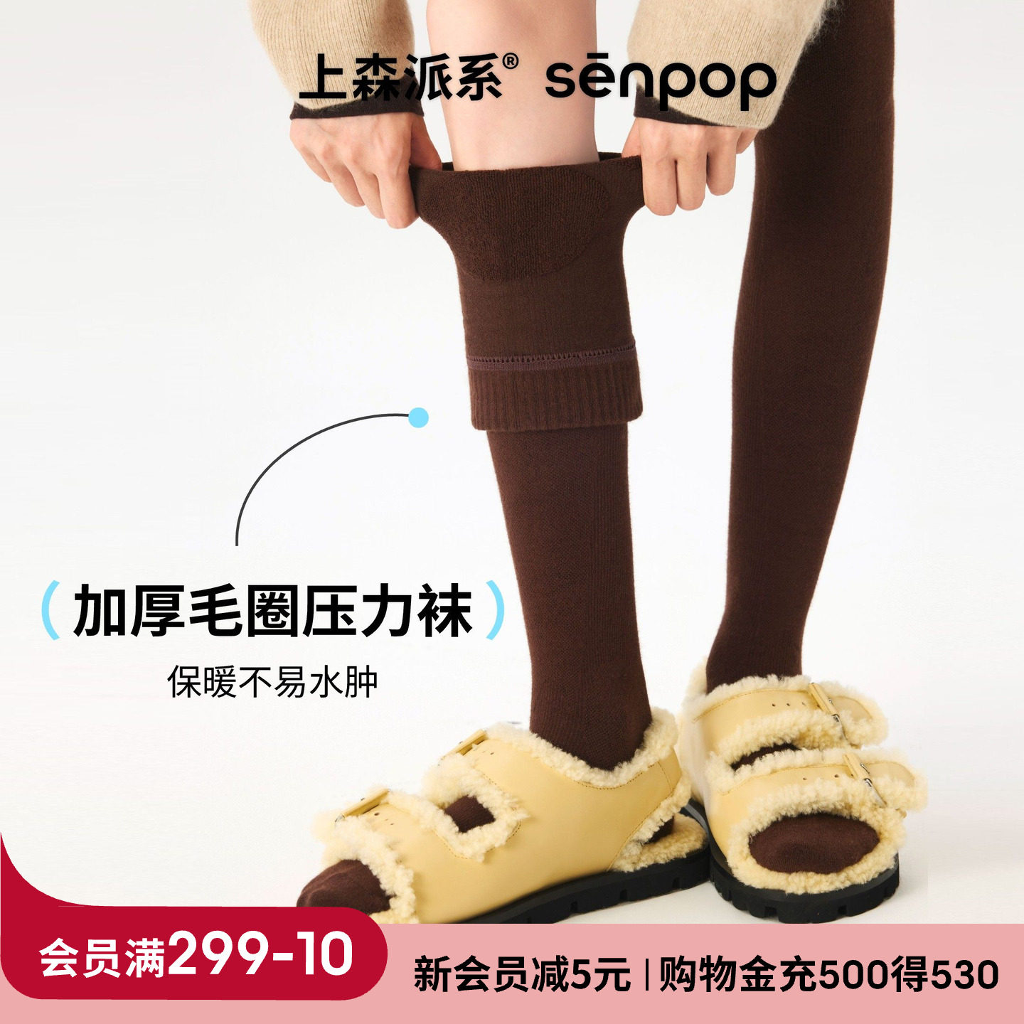 上森压力袜加厚毛圈袜子女秋冬季保暖护膝过膝袜运动袜子2025新款