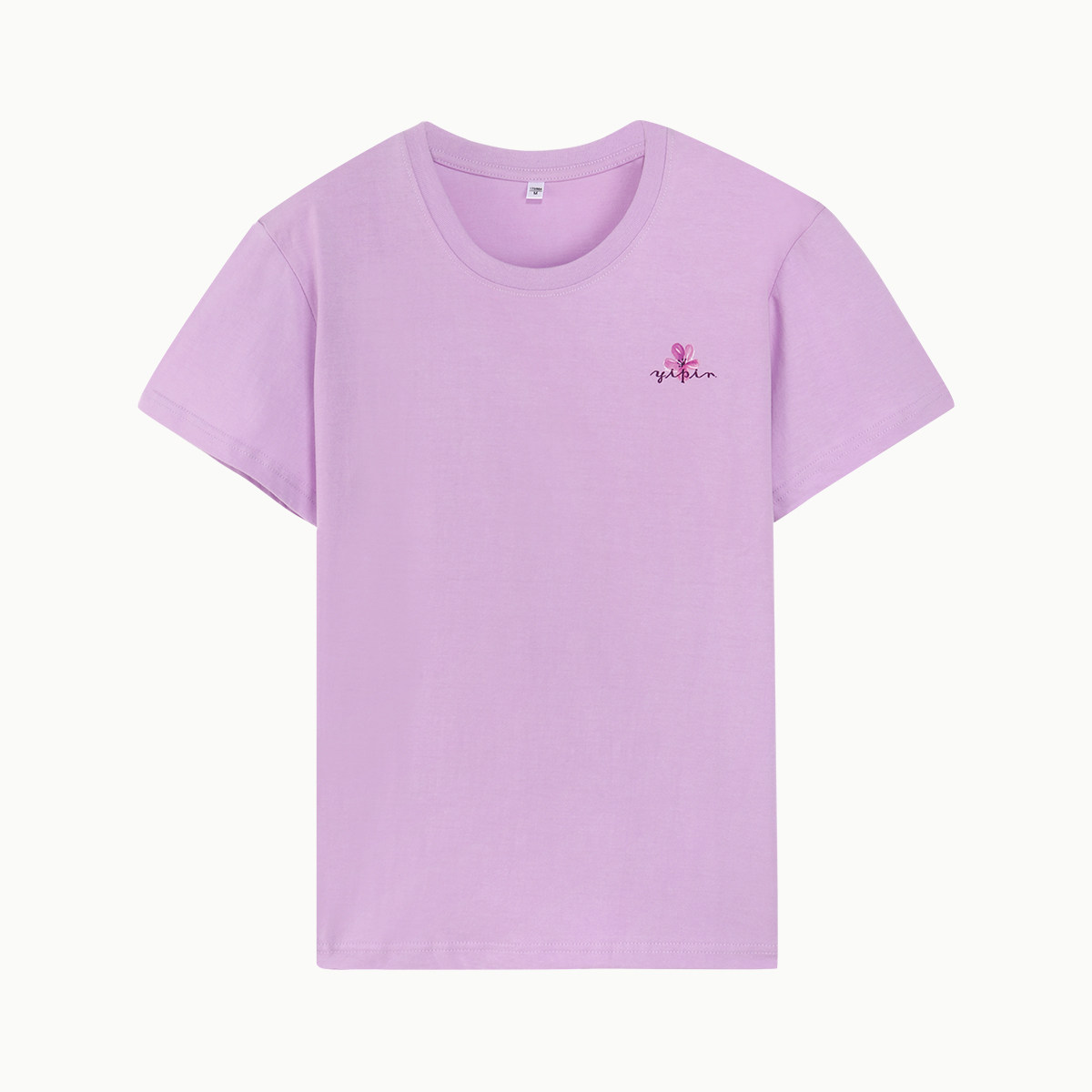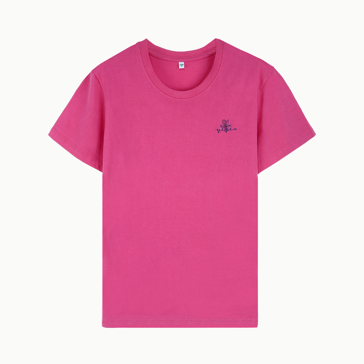 邑品女士T恤 夏季宽松纯棉百搭短袖上衣 玫红花朵薄款运动休闲衣