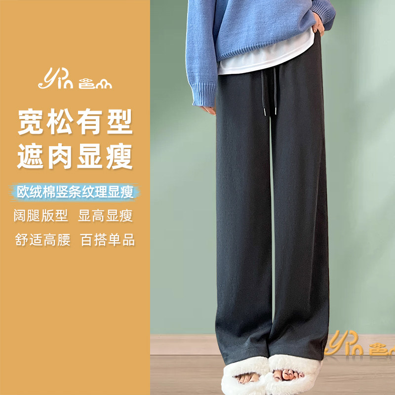 窄版阔腿裤子女秋季2025新款日系雪尼尔慵懒直筒宽松小个子山本