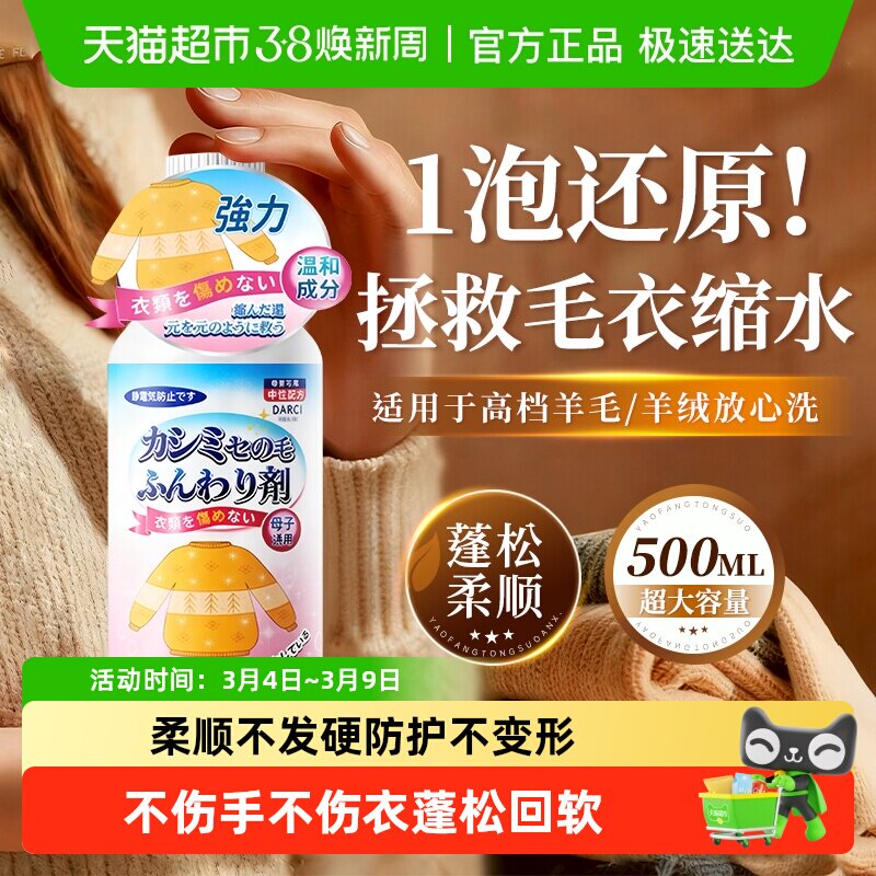日本全球仓羊毛衫缩水还原恢复蓬松剂羊绒毛呢大衣柔顺放大洗涤剂