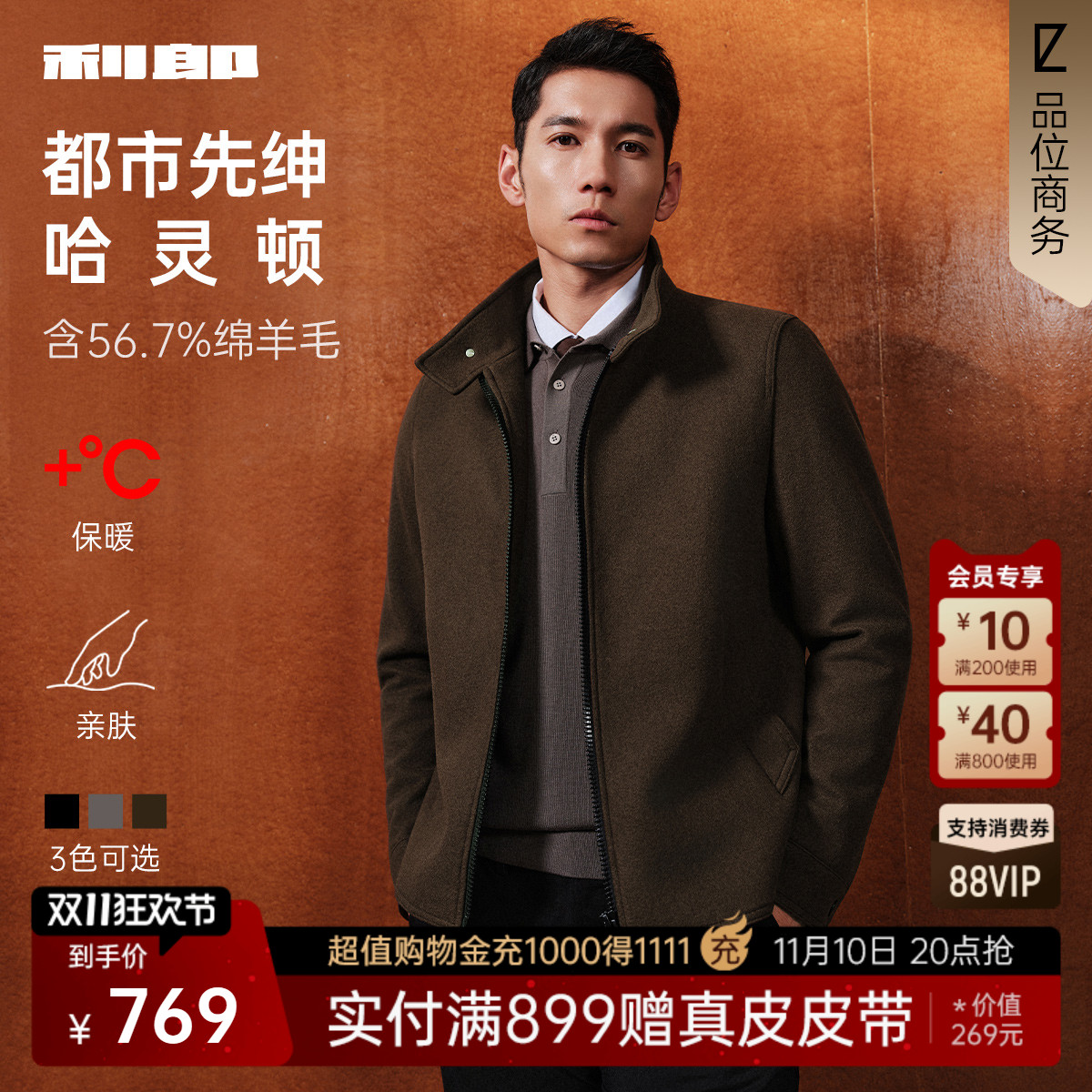 【哈灵顿夹克】利郎毛呢大衣男短款立领2025冬季商务男装羊毛外套