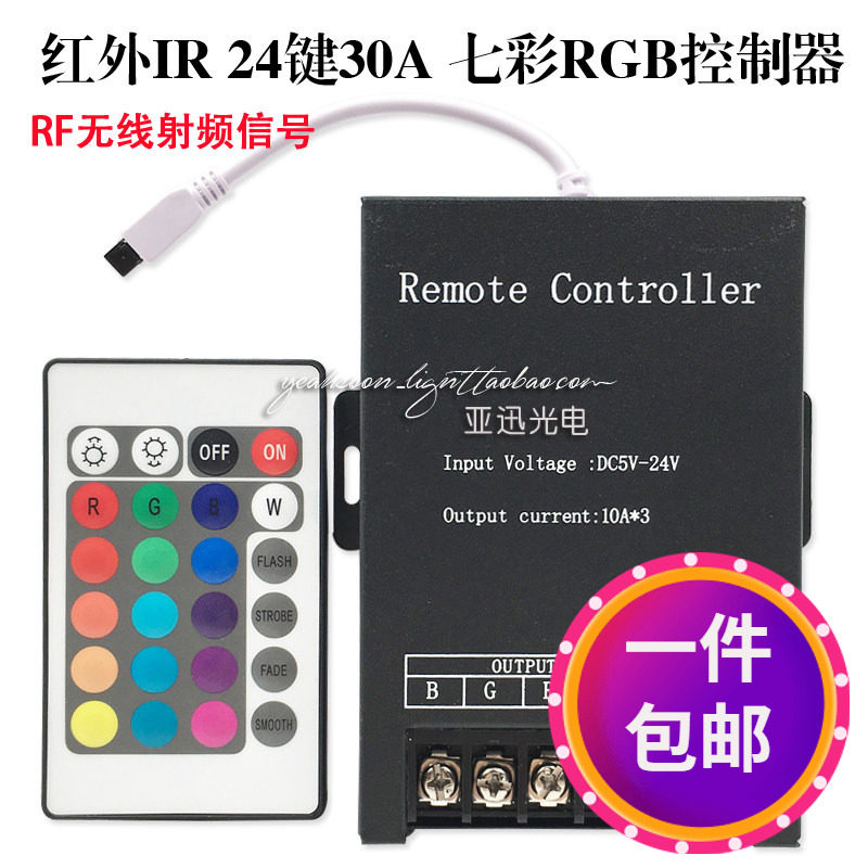 led控制器RGB七彩变色12v灯带30a24键红外无线24v调光控制器360w