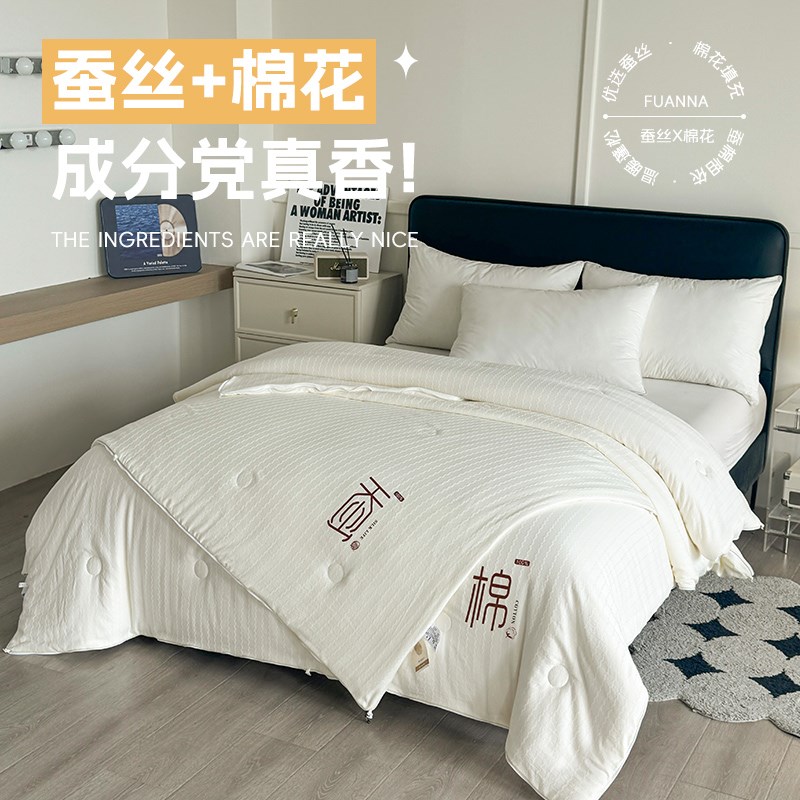 富安娜100%桑蚕丝被芯春秋四季通用夏凉空调被二合一子母被子冬被
