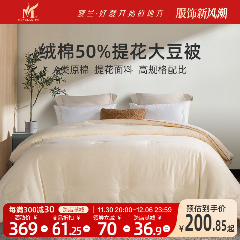 梦兰全棉加厚50大豆纤维春秋被芯冬被学生宿舍保暖二合一子母被子