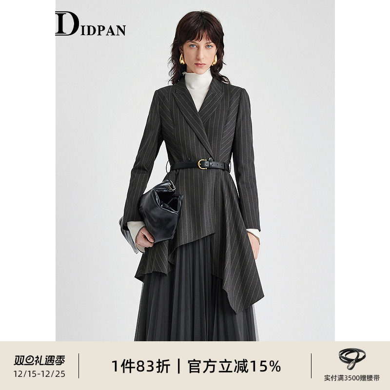 IDPAN连衣裙女春季新款时尚西装领拼接网纱裙子通勤气质显瘦女装