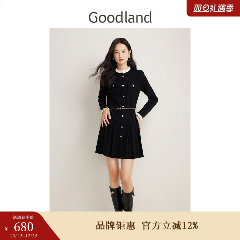 - 大摆秋冬高腰连衣裙