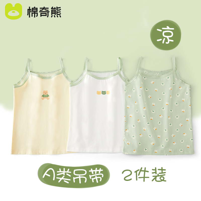 无骨女童吊带背心2件 抽针宝宝纯棉薄款家居护肚打底儿童睡衣夏季