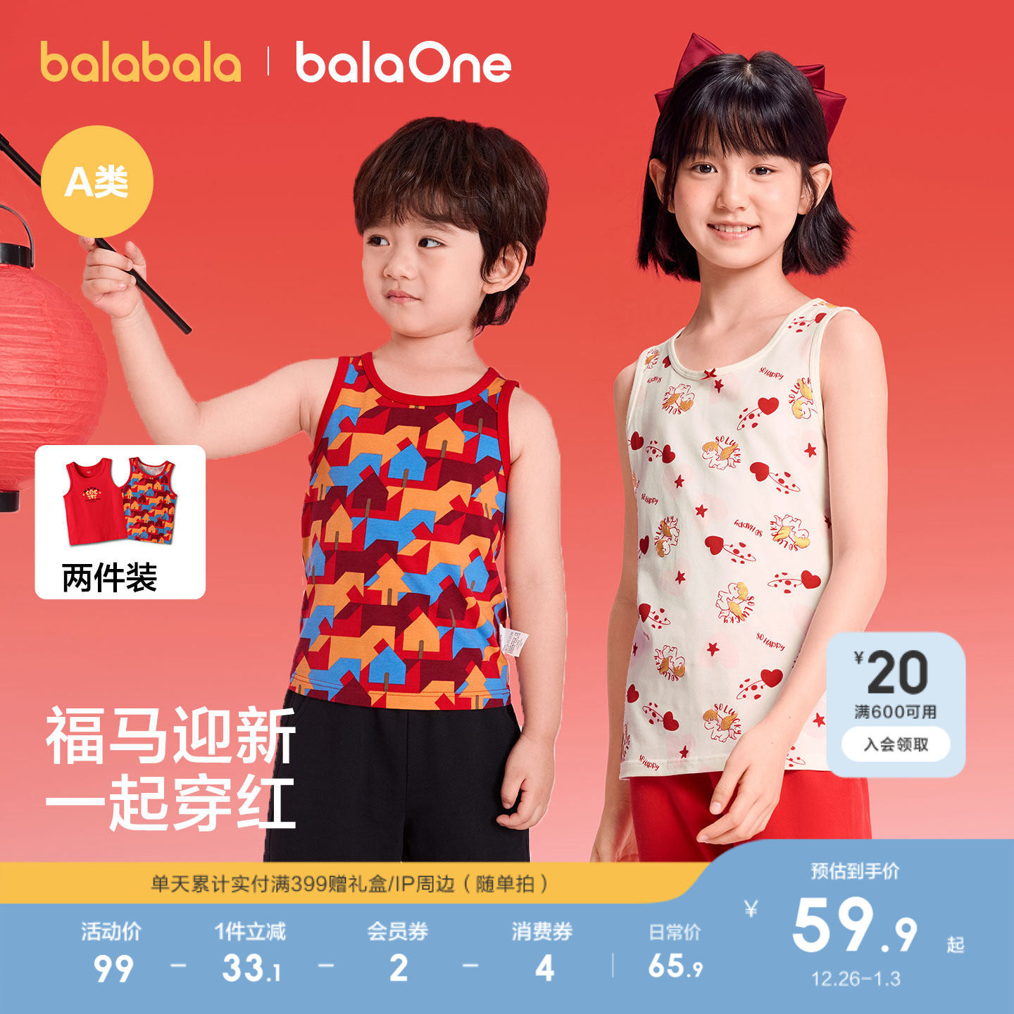 巴拉巴拉儿童打底背心女童内衣男童上衣吊带新年季本命红色拜年服