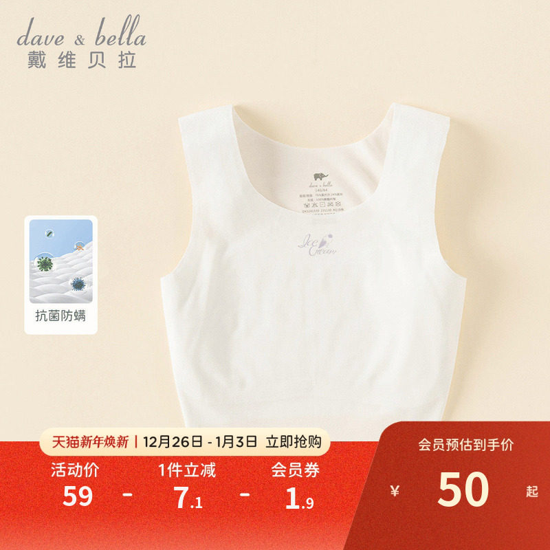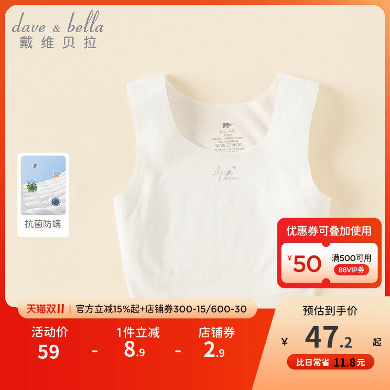 戴维贝拉儿童内衣发育期小学生女童吊带背心女抗菌少女文胸莫代尔