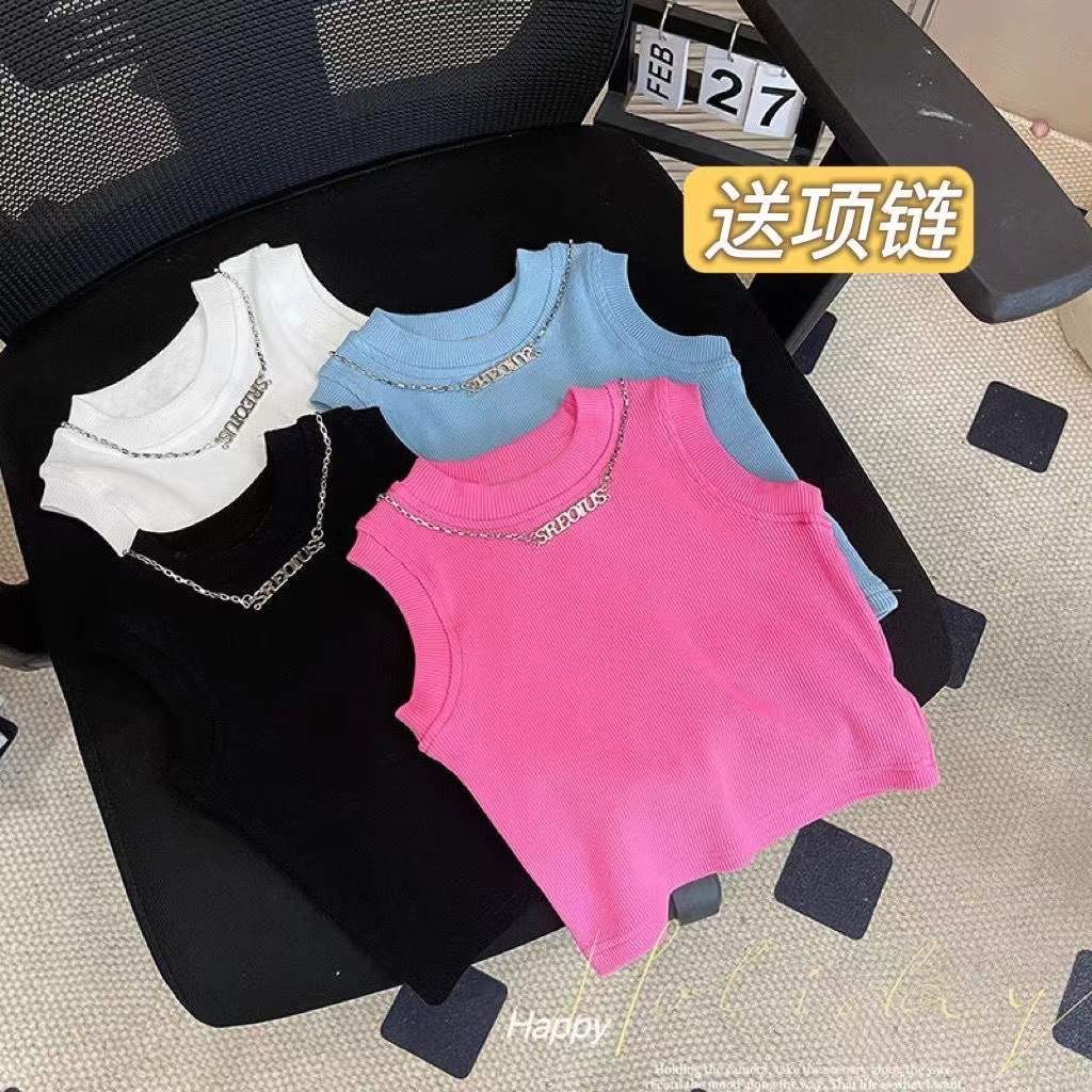女童吊带背心外穿夏季薄款修身辣妹上衣儿童潮酷无袖高腰纯棉T恤