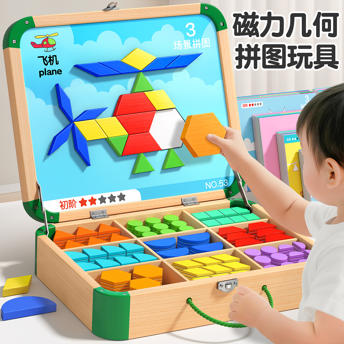 七巧板磁力拼图儿童3到6岁智力幼儿园积木磁吸磁性益智2宝宝玩具