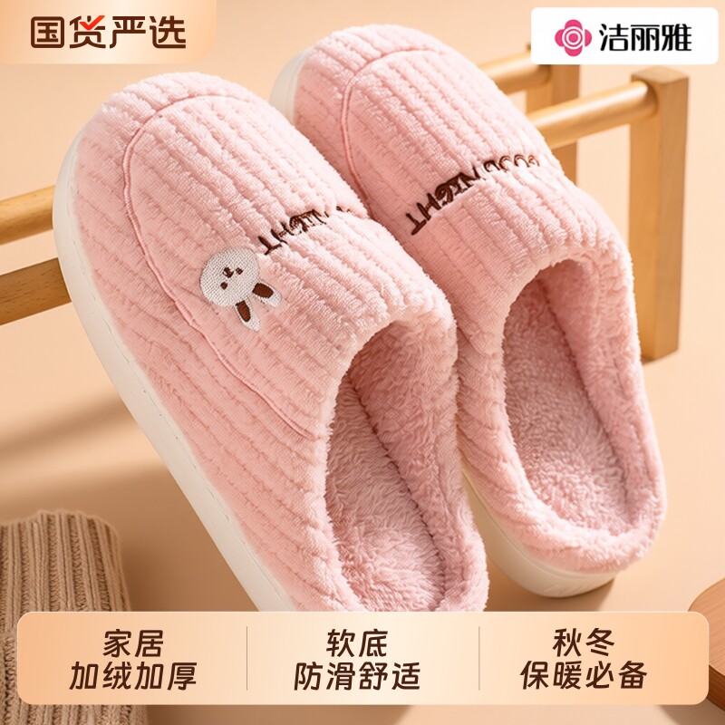 洁丽雅棉拖鞋女士2025新款秋冬季保暖室内居防滑毛绒拖鞋男款橡胶