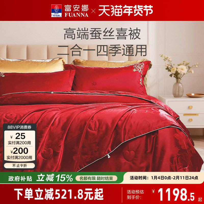 富安娜婚庆蚕丝被冬季被子桑蚕丝被芯二合一婚嫁子母被褥结婚喜被