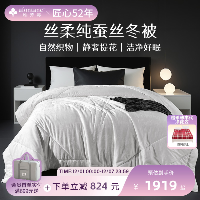 雅芳婷丝柔纯蚕丝冬被冬季保暖被子干爽吸湿透气洁净抑菌冬天被芯
