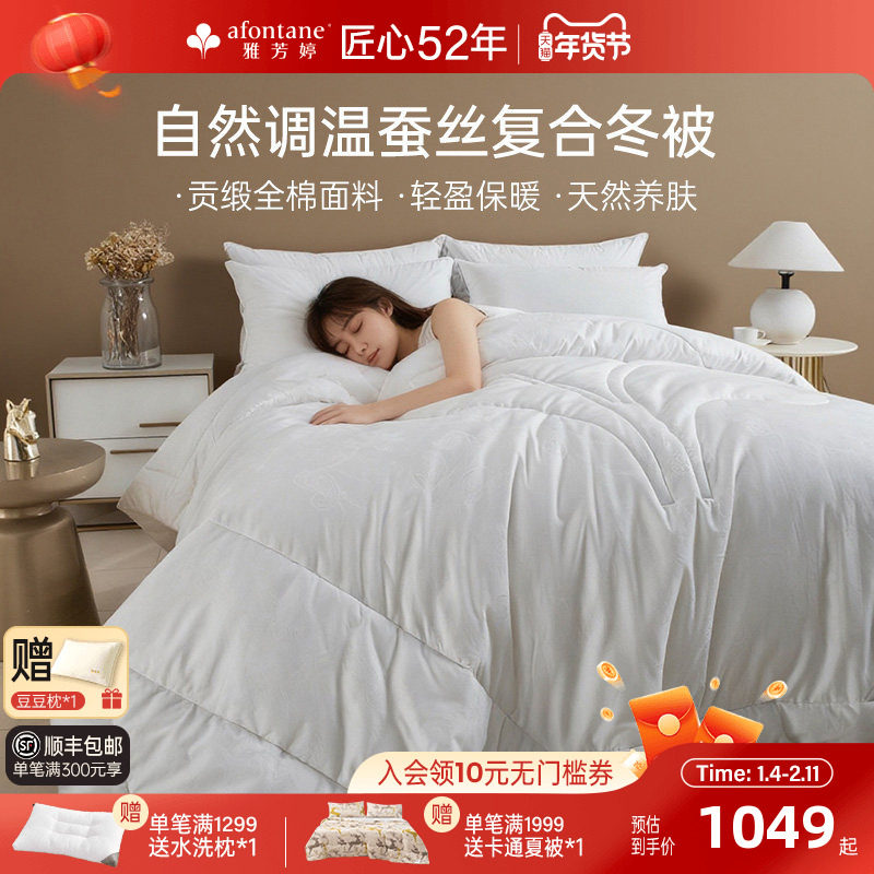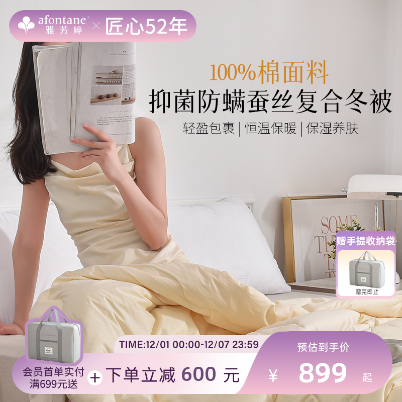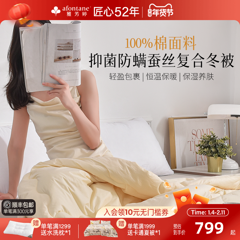 雅芳婷全棉蚕丝复合冬被抑菌防螨冬季加厚保暖被子被芯冬厚被家纺