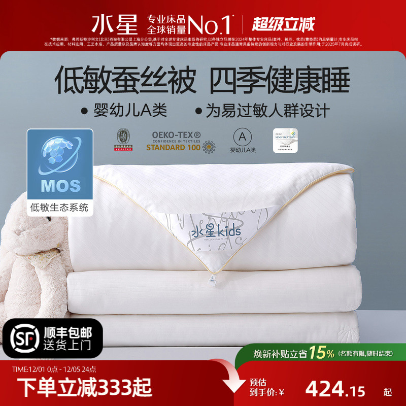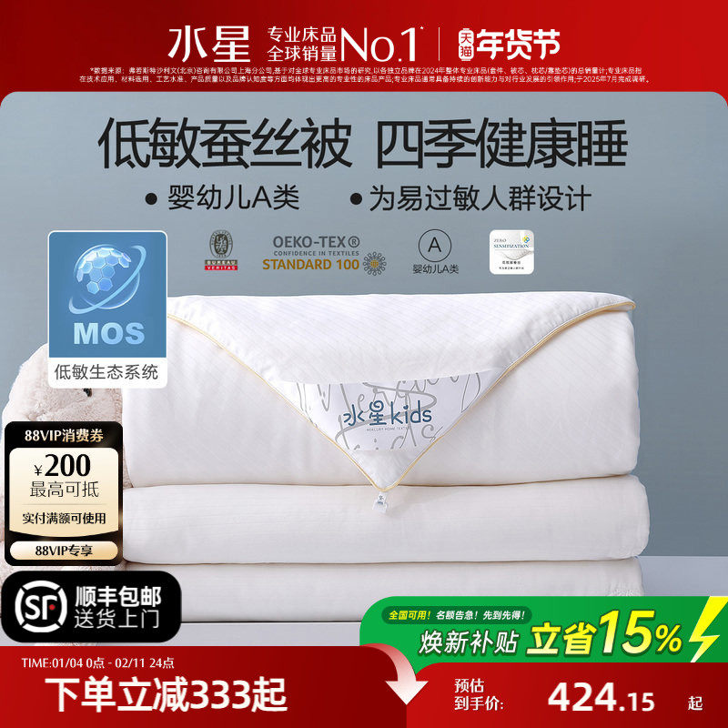 水星家纺A类全棉低敏蚕丝被春秋被儿童子母被四季被冬季保暖被芯