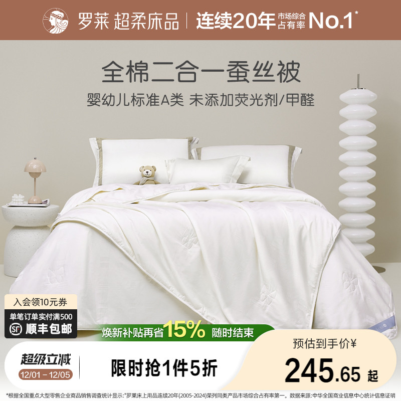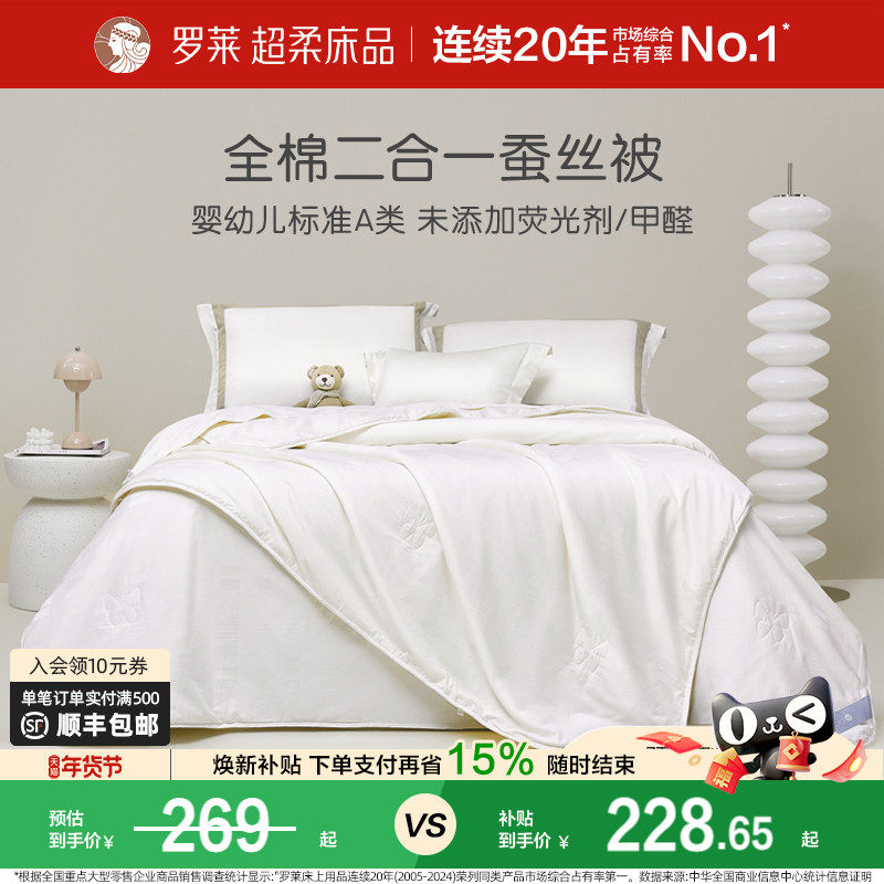 罗莱儿童100%蚕丝被子冬季加厚保暖冬被子母被春秋被二合一被芯