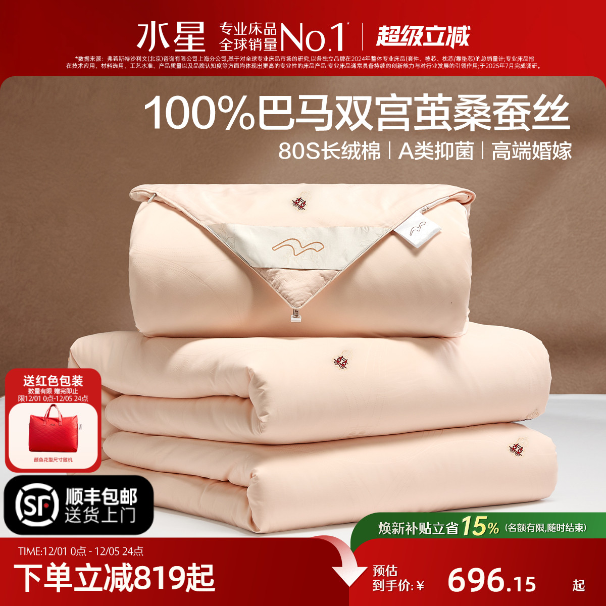 水星家纺100%蚕丝被芯抗菌冬季被子蚕丝子母被二合一被双人床品