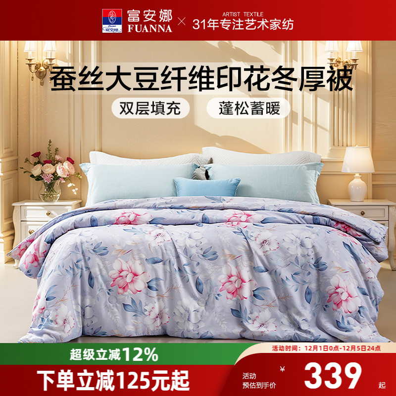富安娜蚕丝被芯大豆纤维冬厚被冬季被子秋冬单人学生宿舍双人被褥