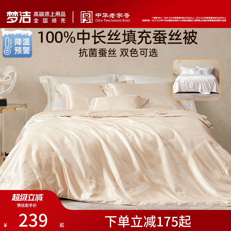 梦洁100%蚕丝被子春秋被冬被四季通用被芯被子冬季加厚抗菌保暖