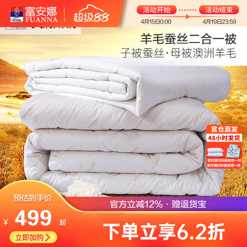 富安娜蚕丝被子母被澳洲羊毛被子春秋冬季被芯四季通用二合一被子