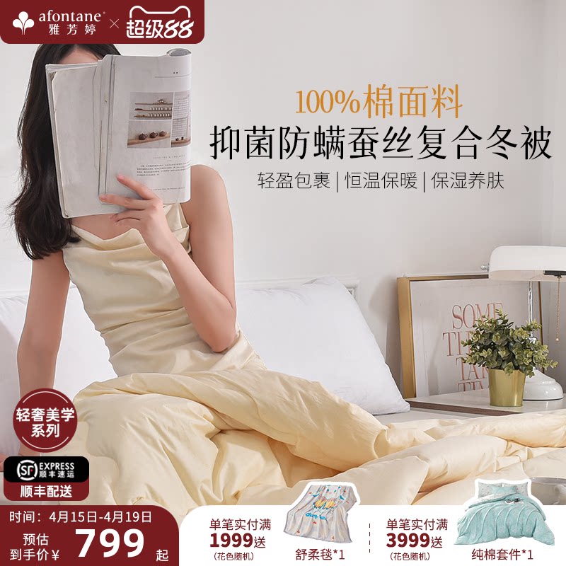 雅芳婷全棉蚕丝复合冬被抑菌防螨冬季加厚保暖被子被芯冬厚被家纺