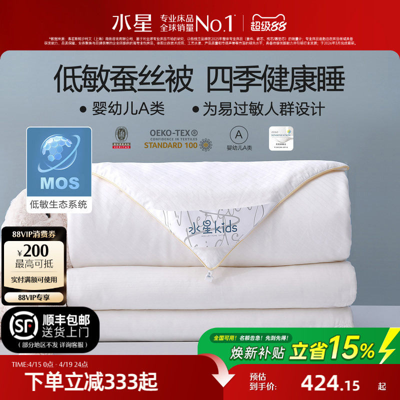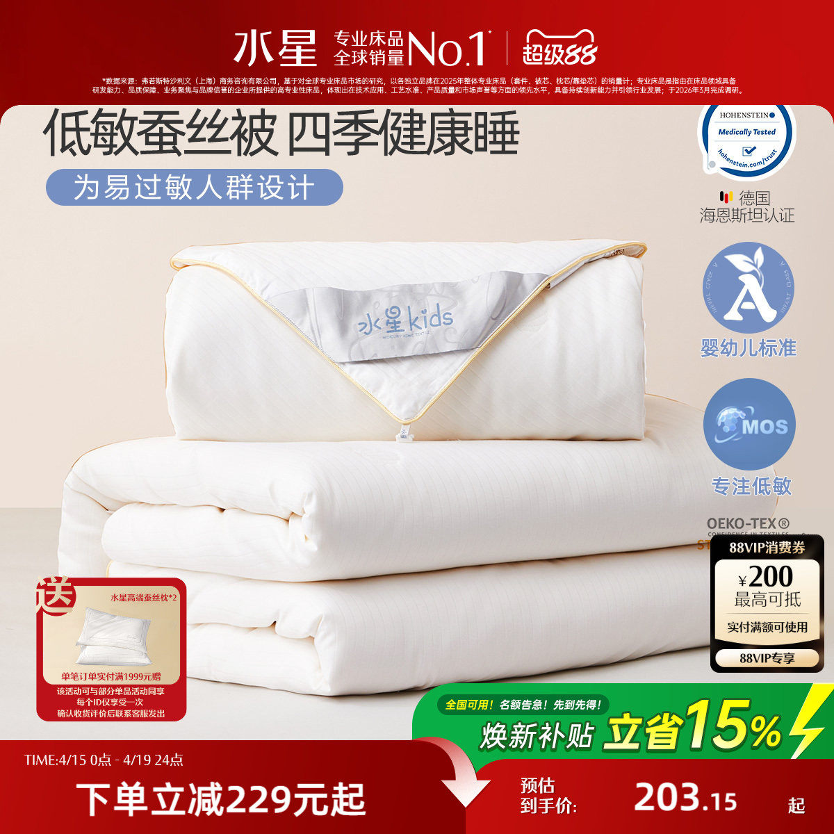 水星家纺被子A类全棉低敏蚕丝被春秋被儿童冬季四季通用保暖被芯