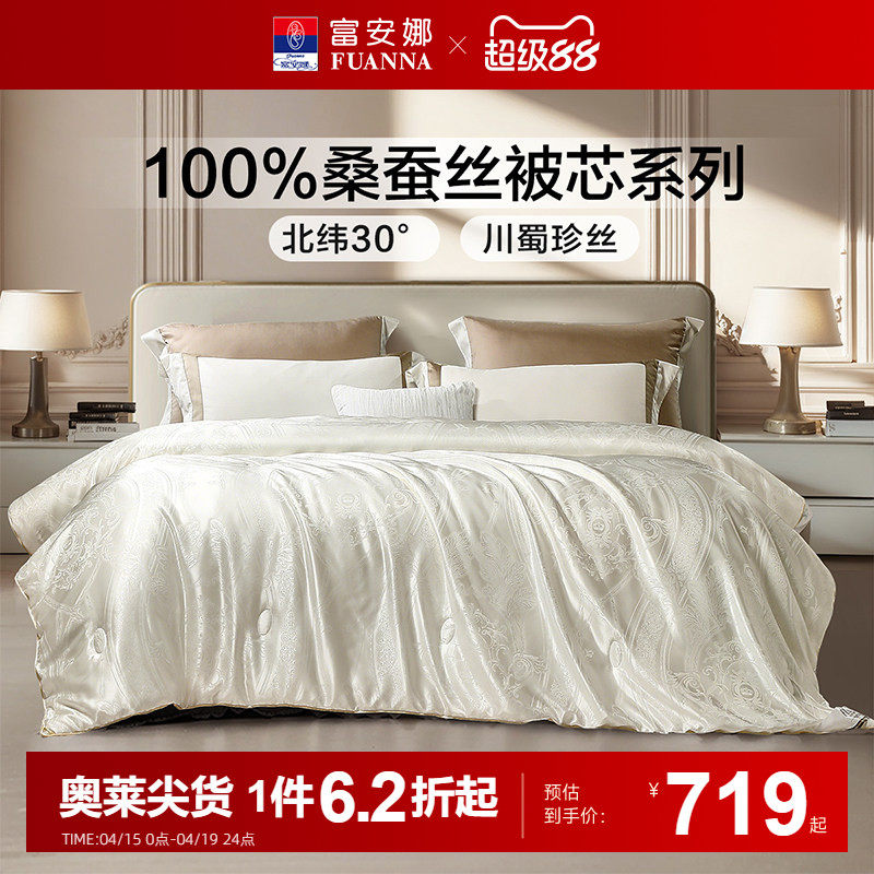 富安娜家纺蚕丝被100%蚕丝被子四季通用春秋被冬季加厚保暖二合一