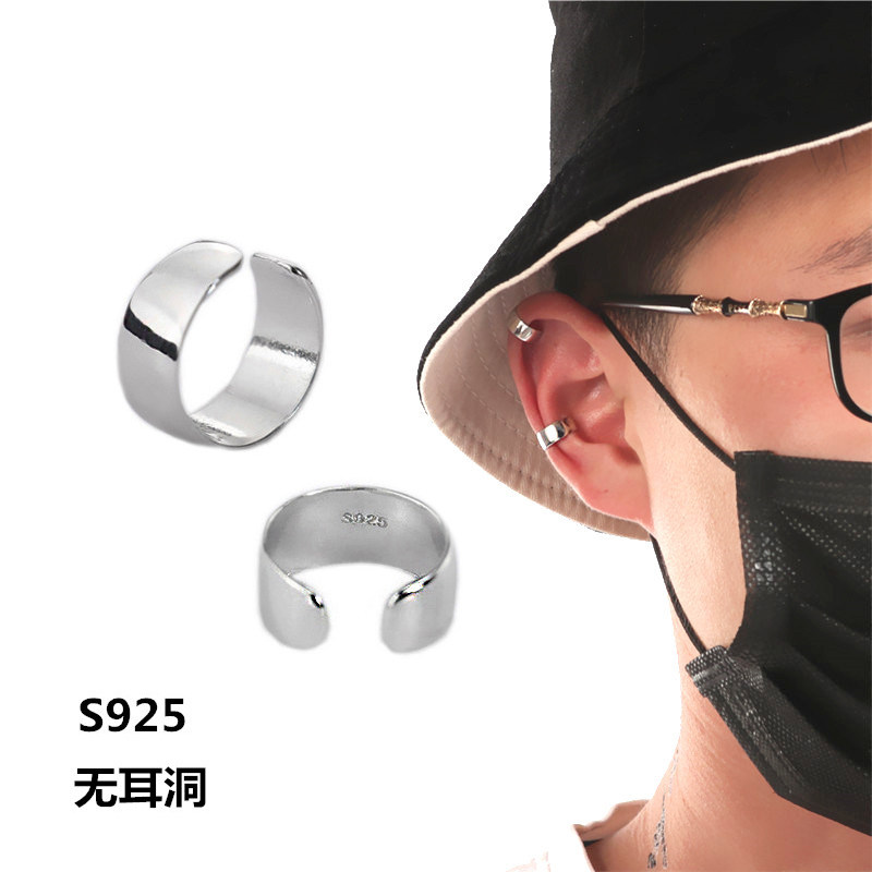 ACITY喜城925纯银光面无耳洞耳夹无洞耳钉耳骨潮男女耳环嘻哈耳饰