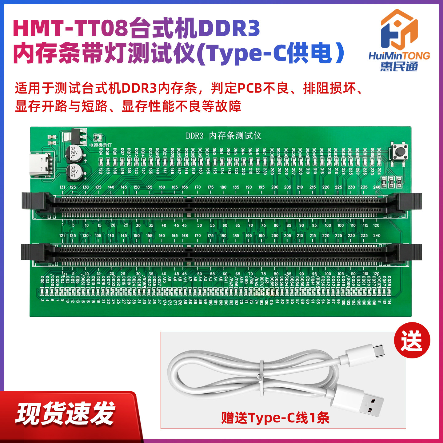 HMT-TT08台式机DDR3内存条带灯测试仪内存卡诊断卡USB-Type-C供电