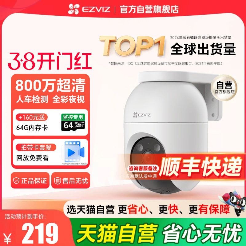 萤石摄影头C8C室外360无线网络家用手机远程监控摄像头官方旗舰店