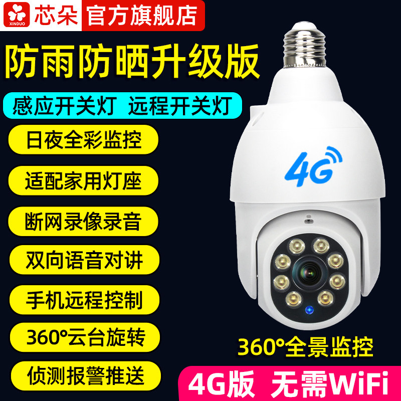 家用360度户外高清无线4G灯头免插电无需网络手机远程监控摄像头