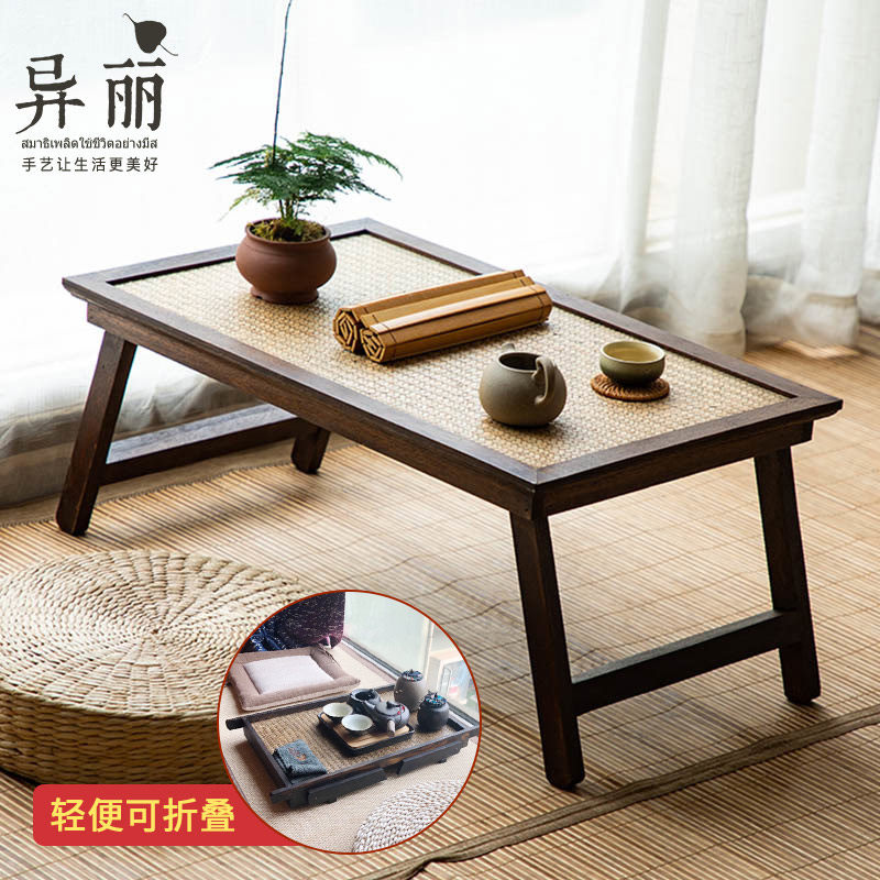小桌子叠卧18157室竹窗小茶几榻榻米日式桌子楠茶桌坐地折炕桌家
