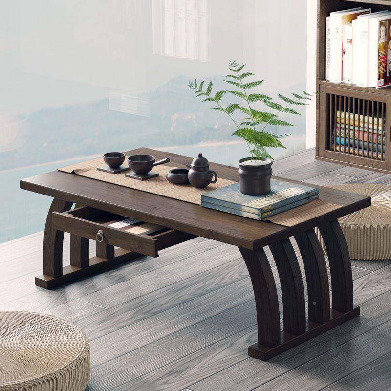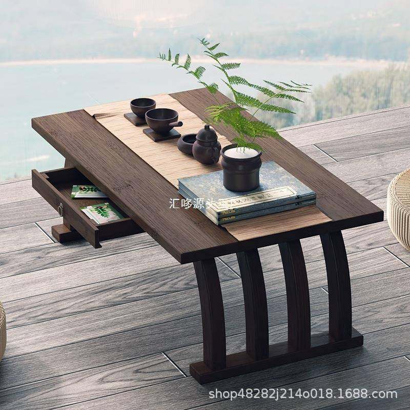 中式飘窗小茶几榻榻米简约窗台阳台楠竹茶桌矮桌地毯小型桌子坐地