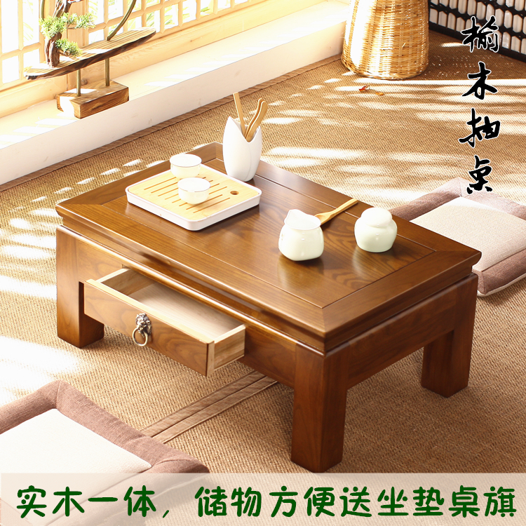 老榆木实木抽屉桌飘窗桌储物桌地台矮桌小茶几榻榻米炕桌方桌茶桌